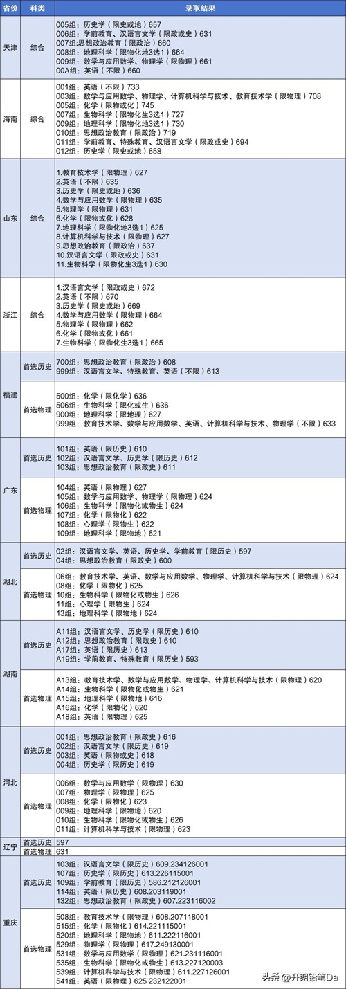 本文整理的是这6所部属师范院校的公费师范生录取数据,一般来说,普通本科录取会比该分数线更低。