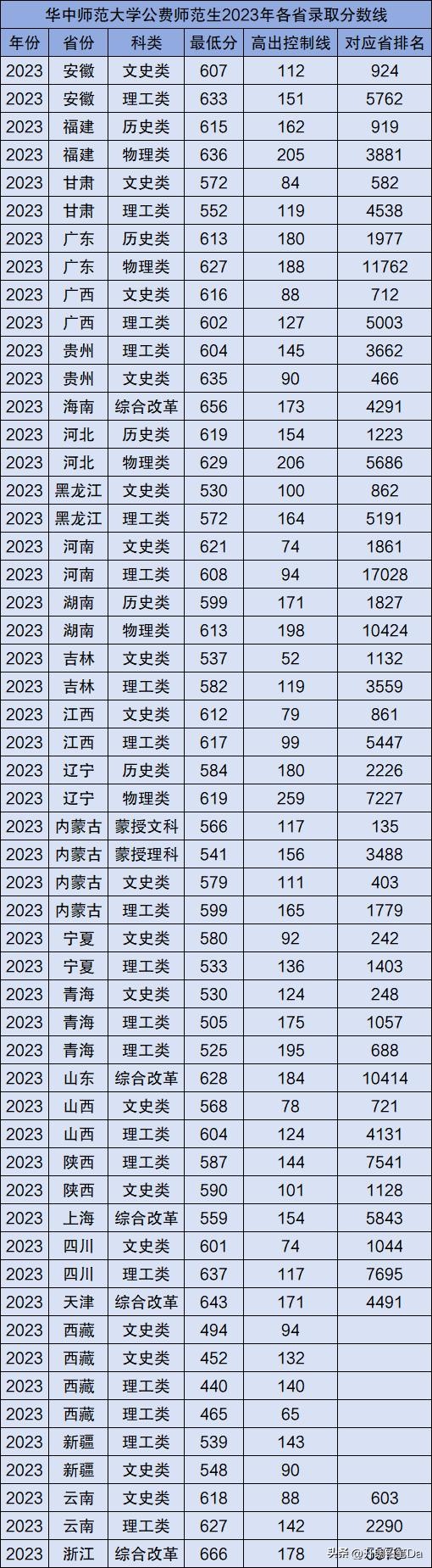完整分数线表如下: