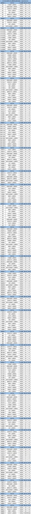 各省最低分具体如下表所示: