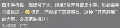 还有网友更是直言福建舰海试,嫦娥奔月都是小事都没推送,问界出了一次事故,这是开天辟地的大事必须精准推送!