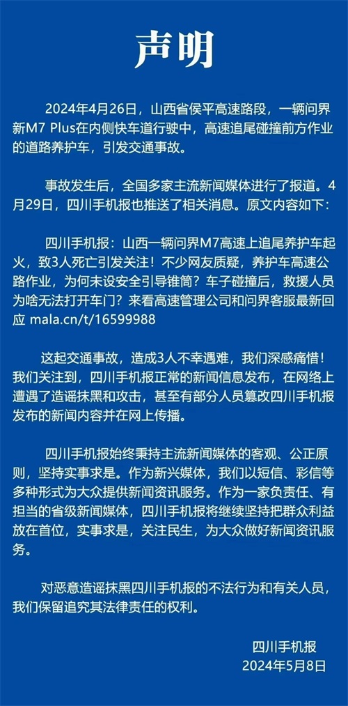 而四川手机报更是给四川的诸多网友都推送了此次山西问界事故,直接引起轩然大波,网友纷纷表示头一次见到交通事故用短信推送的,这是开国以来的第一次事故吗?而百度百科也将问界此次事故列入其中,对此四川手机报也是招到了不少网友怒骂!