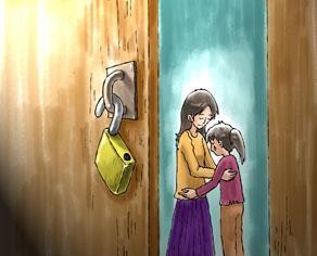 终于在今天,母亲又锁上了那道门,母女二人相拥而眠。