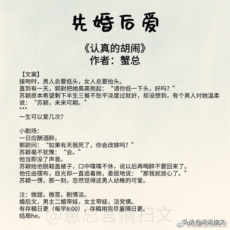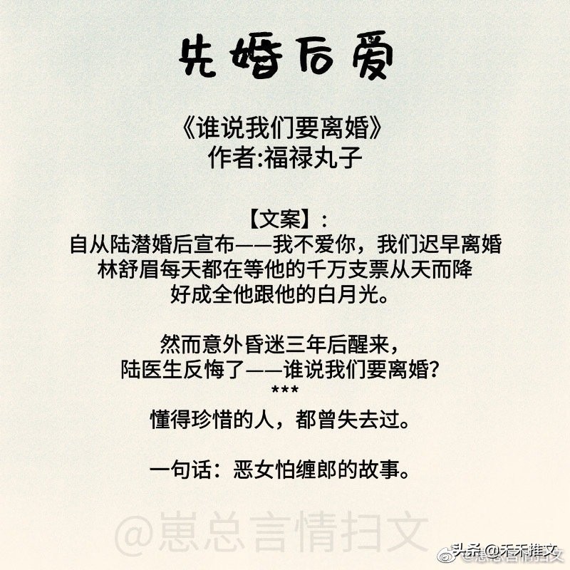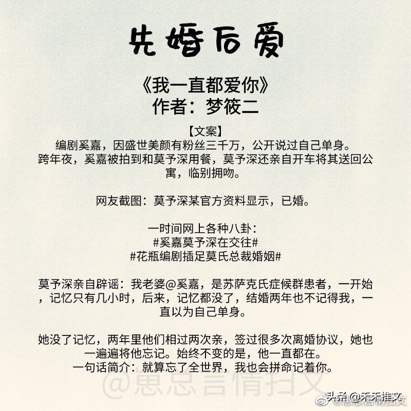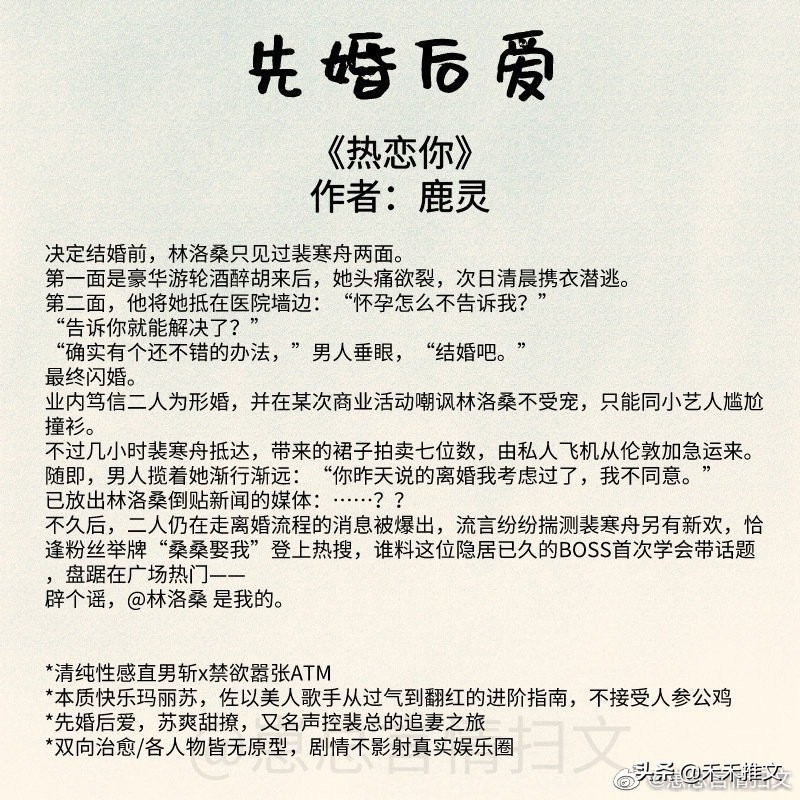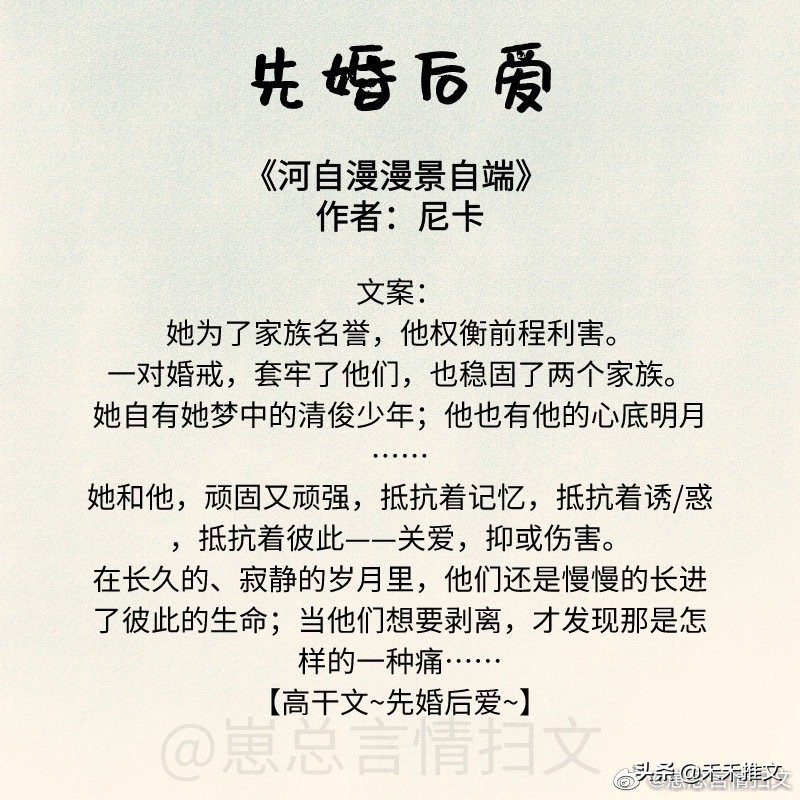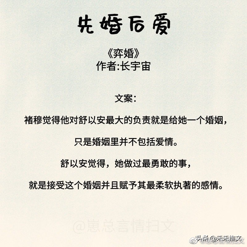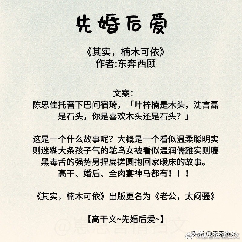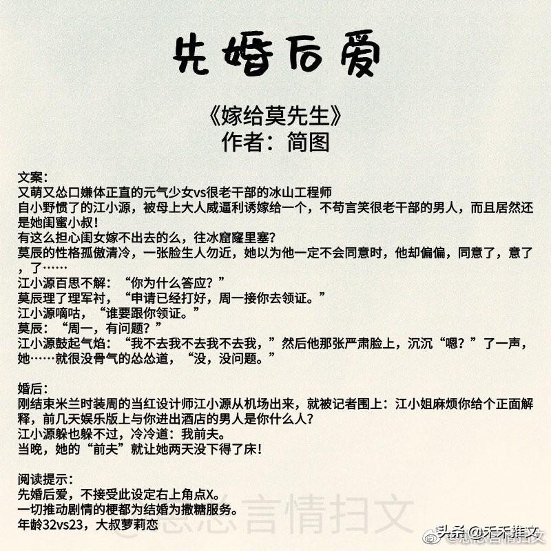 今天的这篇推文,禾禾为要为小伙伴们分享11本先婚后爱的婚恋文小说。