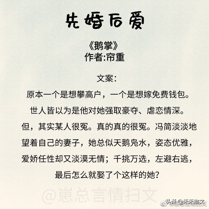 强推!分享11本经典好看先婚后爱的婚后文《鹅掌》《势均力敌》