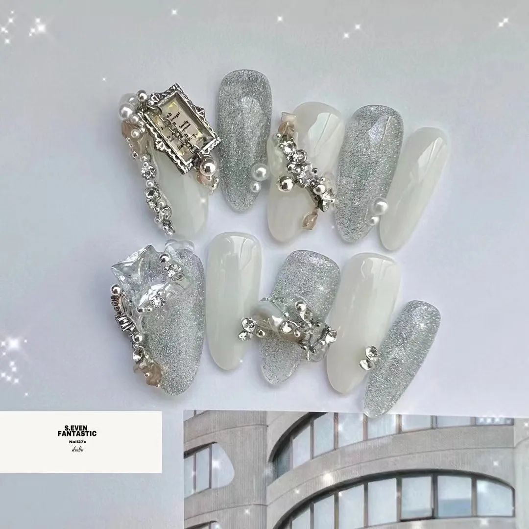 那要是增加点水钻和亮片就更不得了了,随便搭配点蓝色绿色都绝美!