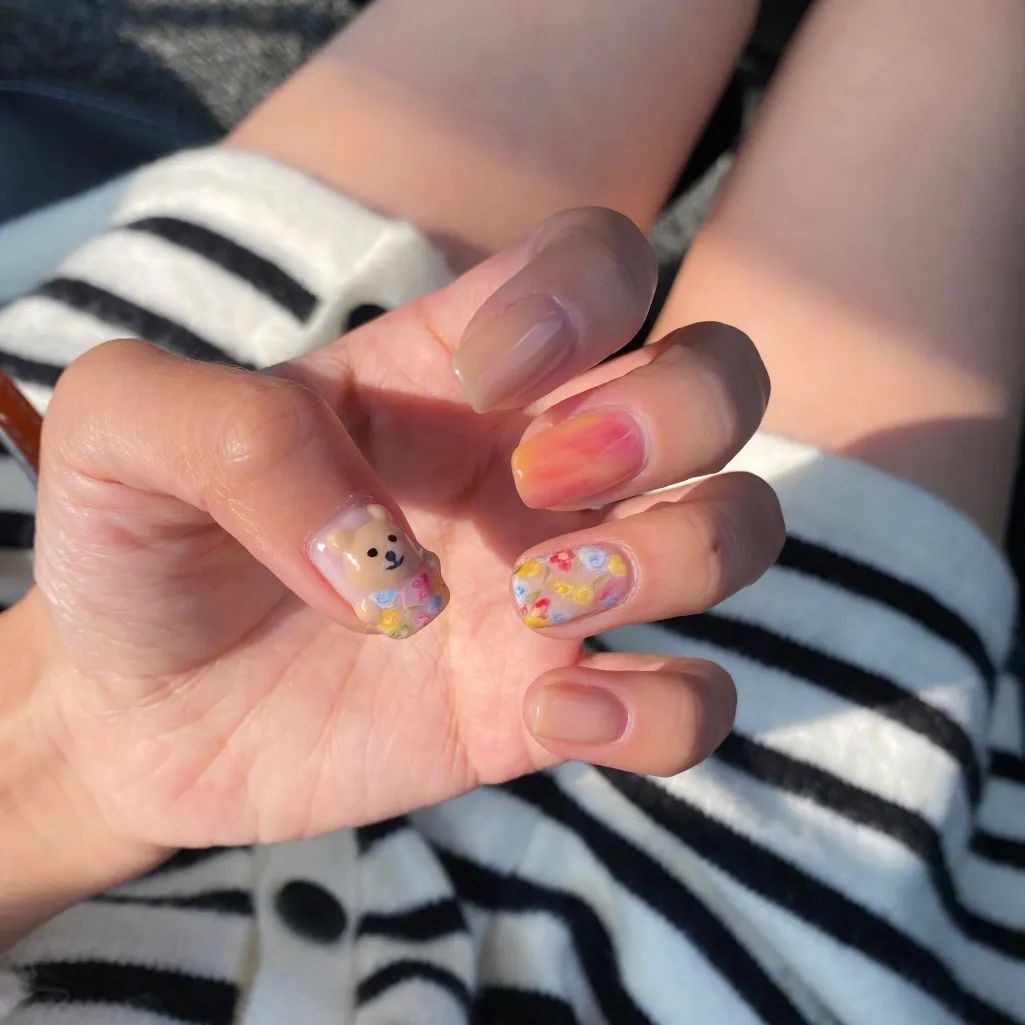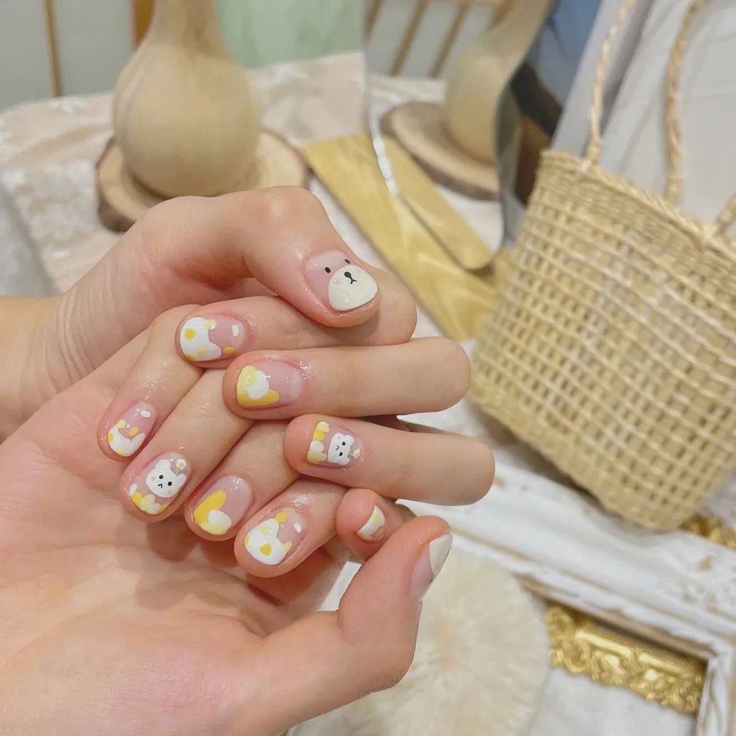平时走可爱风的姐妹,也可以尝试把可爱的元素搬到指甲上,小动物、花花草草都超级减龄!