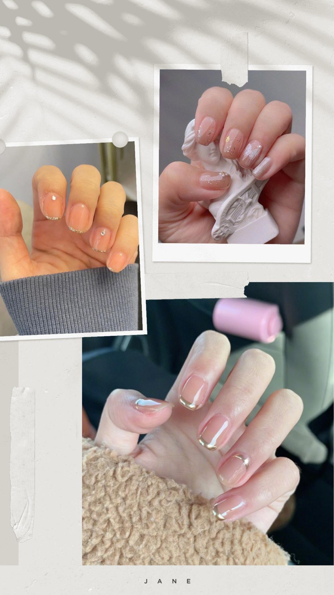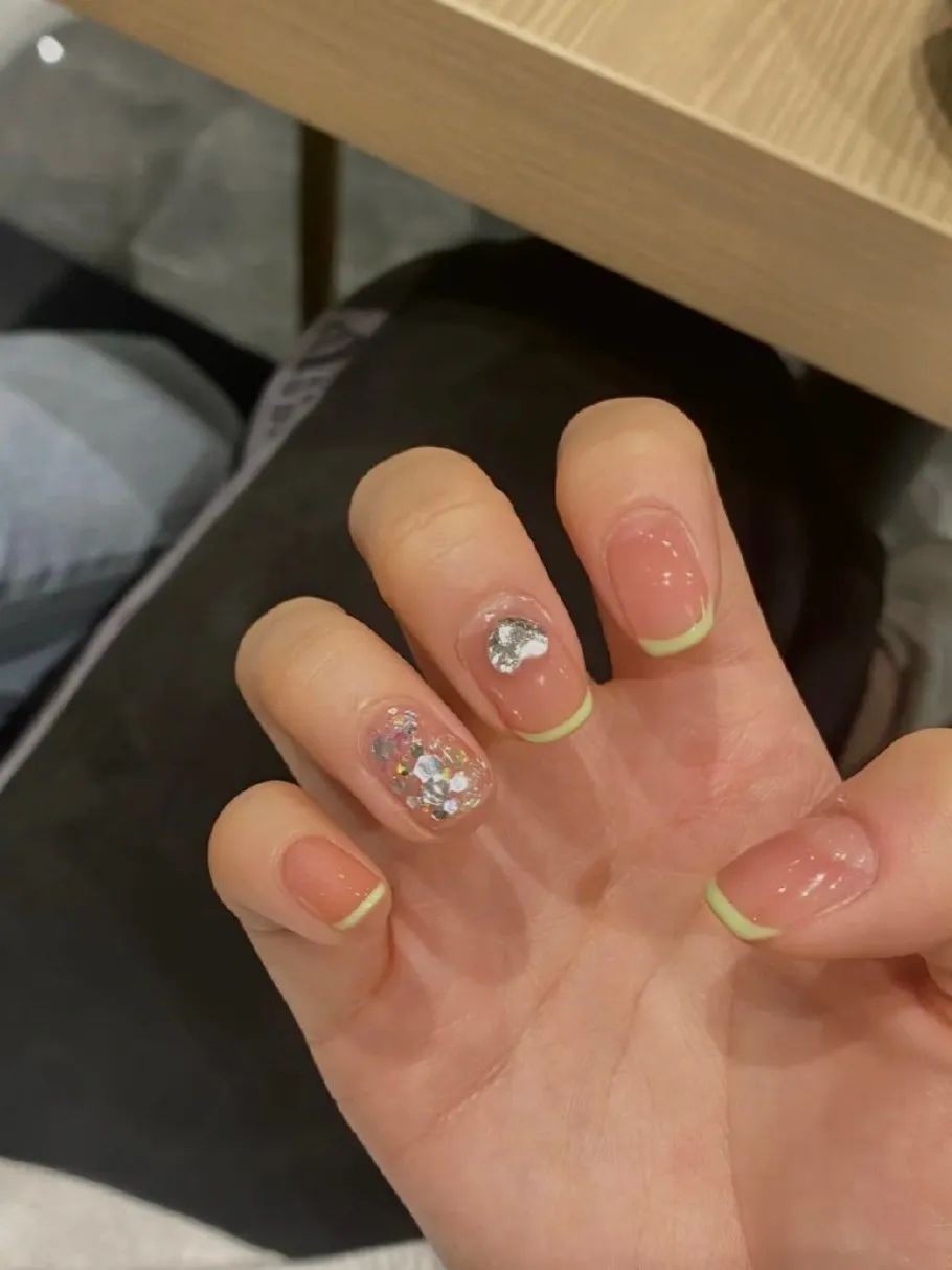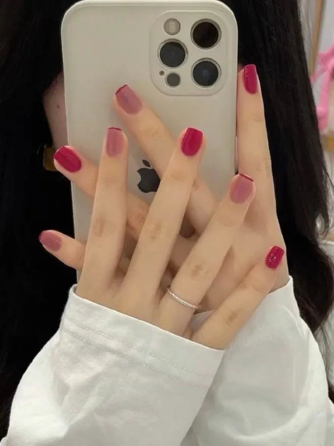 最近这种指尖包边和指面贴画的款式也很火,不喜欢太复杂款式的姐妹可以试试,精致又不会夸张。