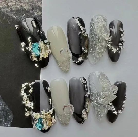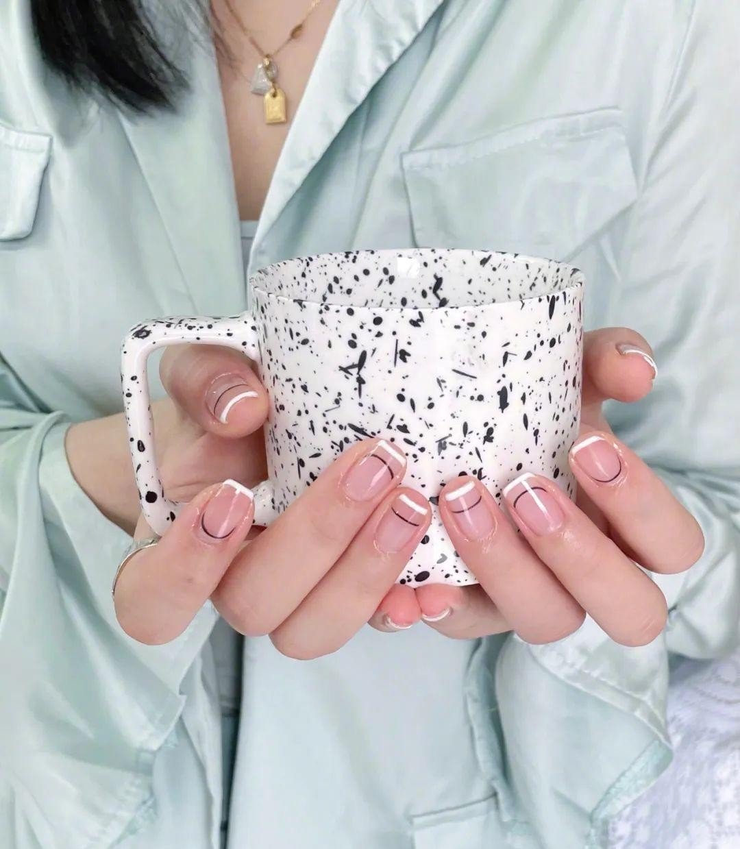 要我说,美甲真的越简单越耐看,就算是不用其他装饰,都不会减少冰透甲的魅力,简约的黑白线条就足以让指甲变精致。