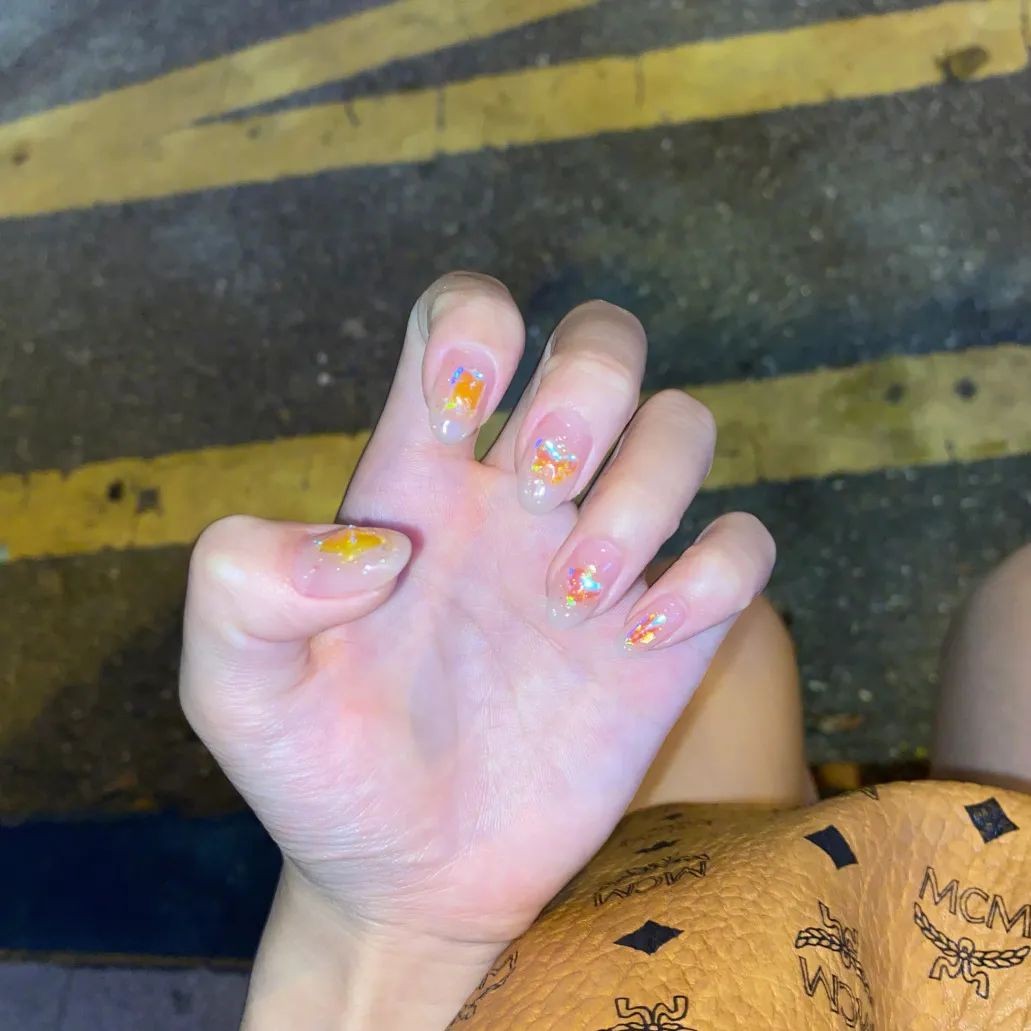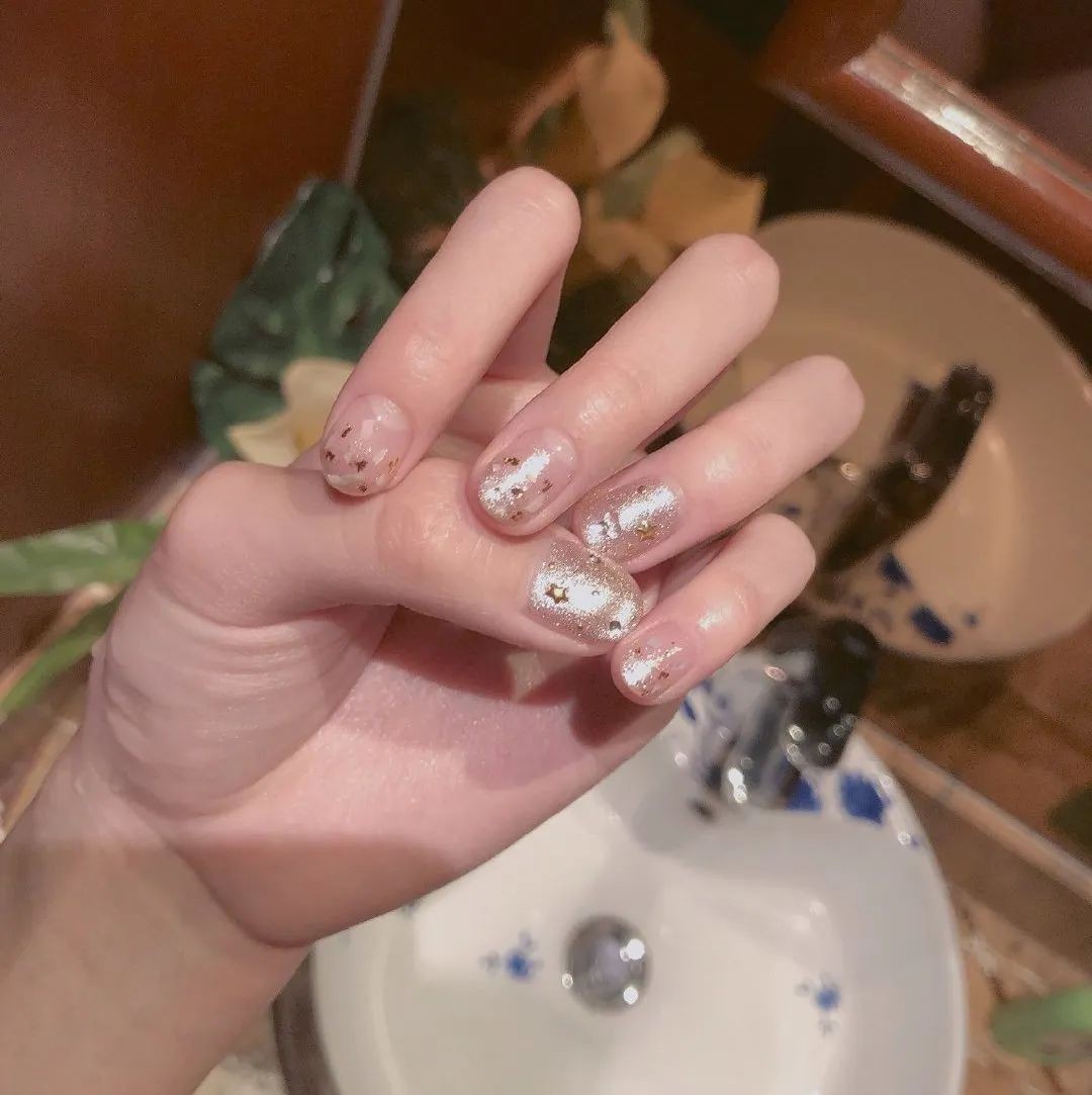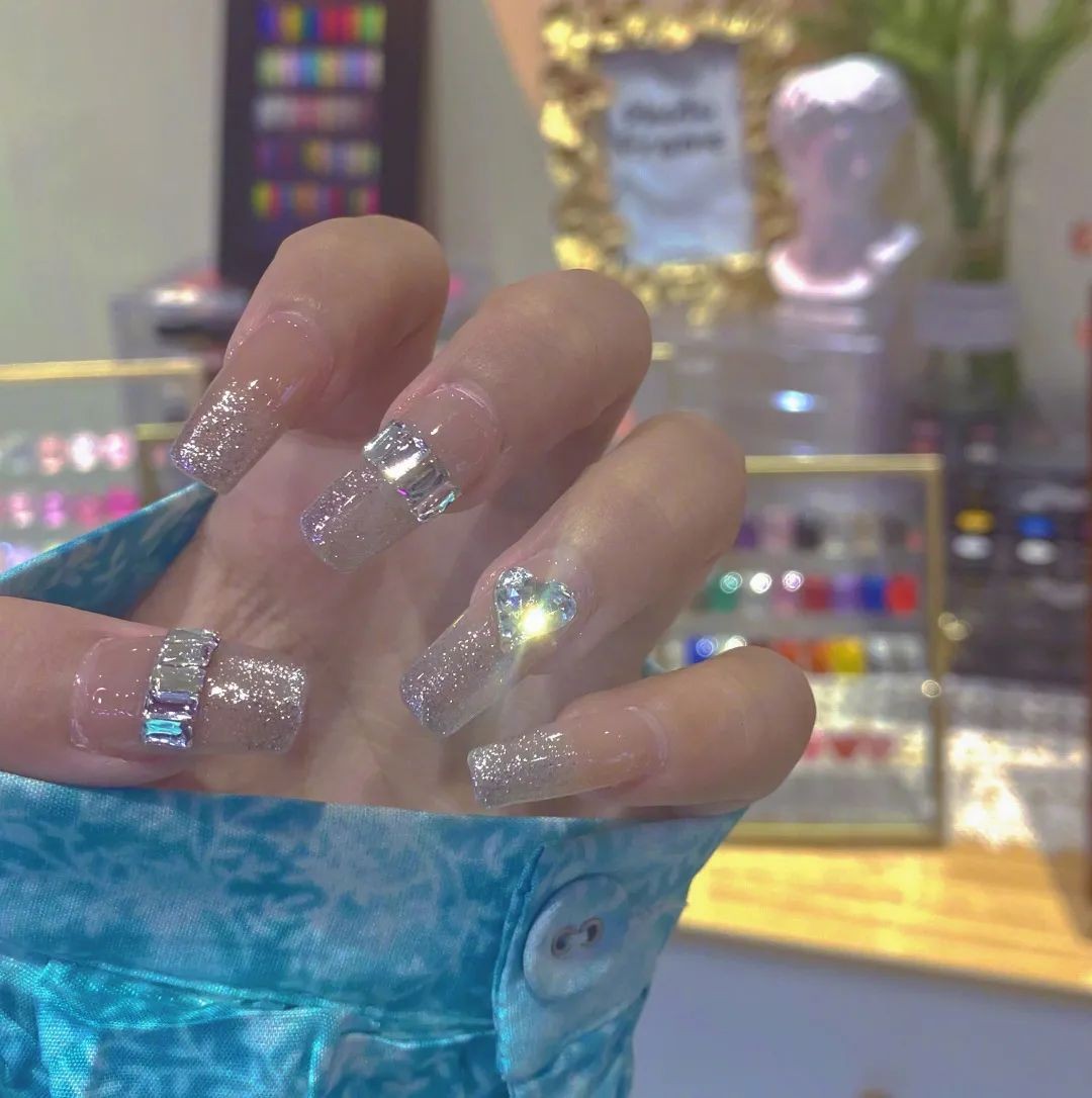只要在透亮的指甲上点缀一点亮钻就hin好看,款式简约又精致,适合想要做本甲的姐妹萌。