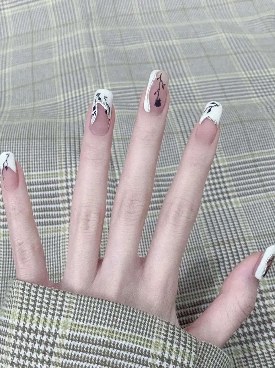或白或黑的线条随意地点缀在指尖,就像是中式水墨画一样肆意潇洒,更添加几分艺术感。