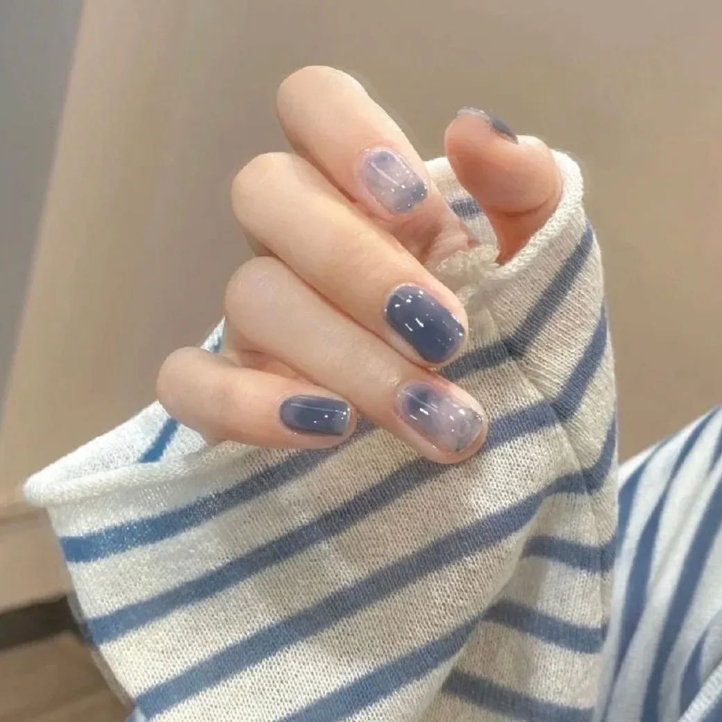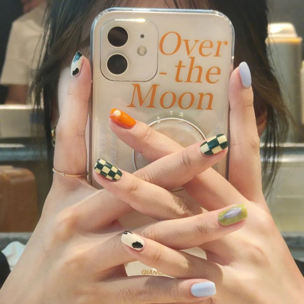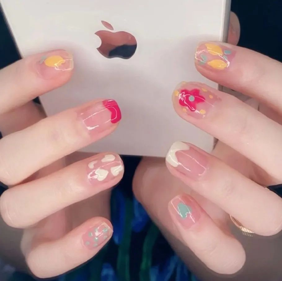 想要独特一点的姐妹也可以试试看不规则形状白色奶牛纹,冰透甲显得整个指甲都干净清爽起来,只是简单的颜色也可以简约高级。