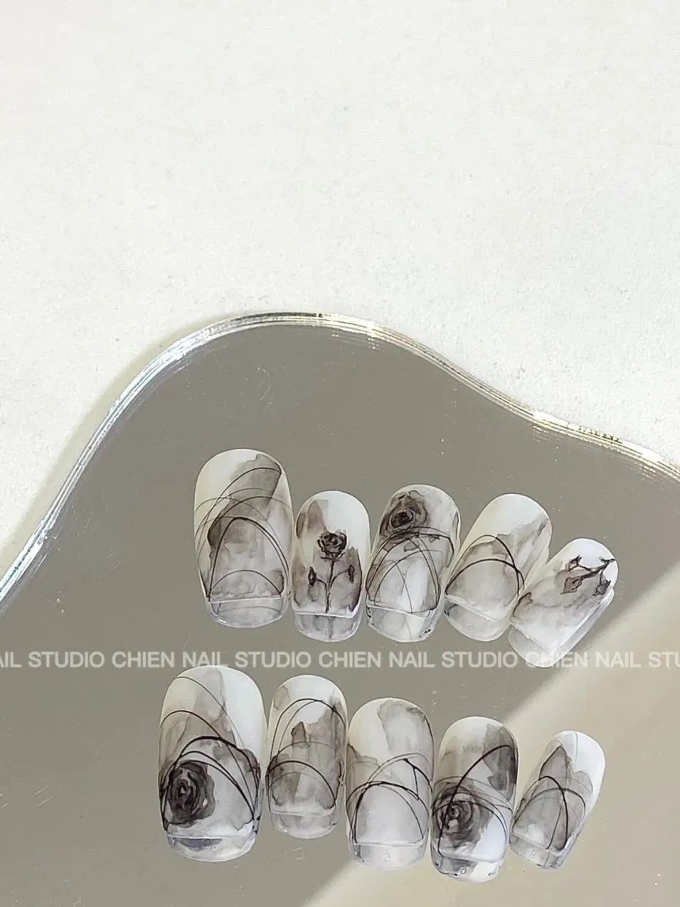 芽芽超喜欢这种晕开的水墨,让人自带一股子诗意,清淡浓烈在一双手上都能展现出来~