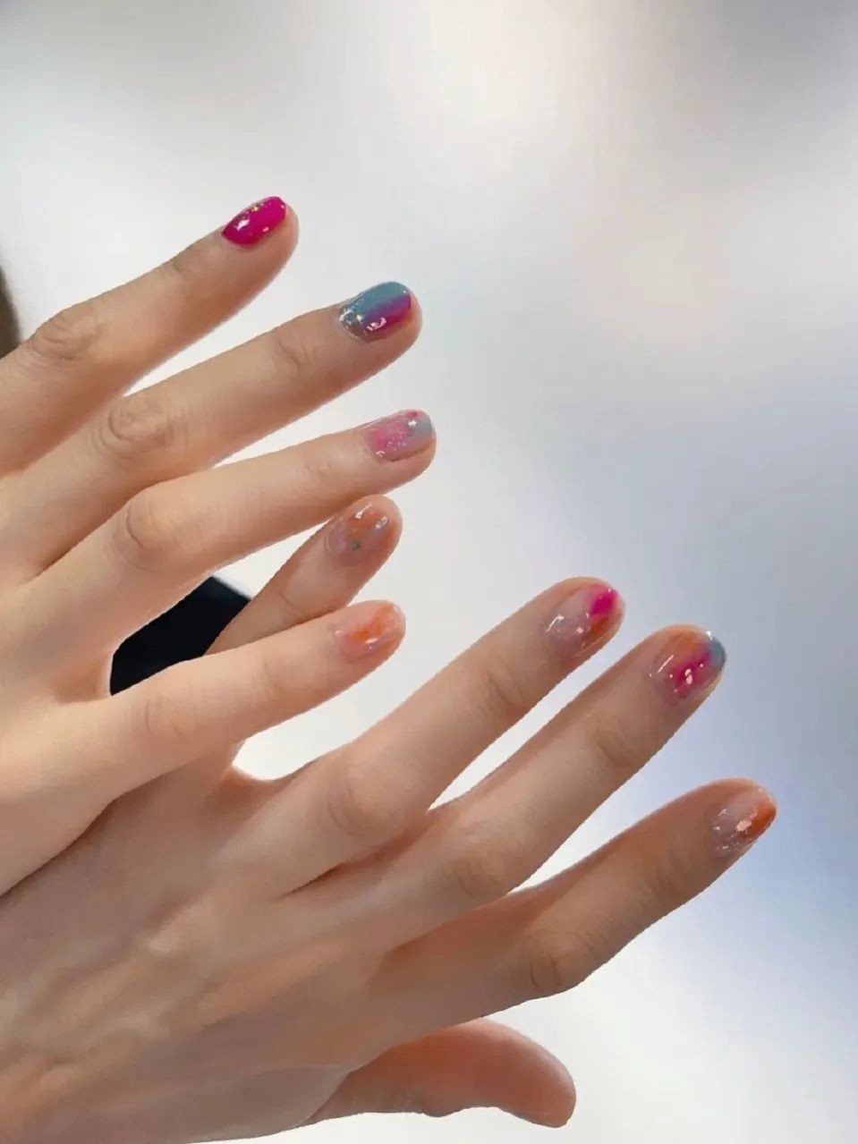 夏天不要太适合冰透水感甲!透亮裸色的美甲灰常轻盈,一整个告别呆板感~