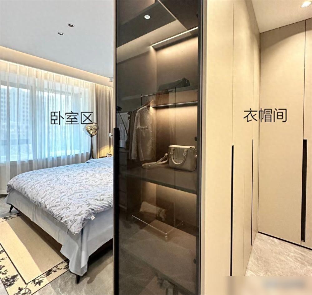 其实非常简单,将卧室一分为二,切出一个步入式衣帽间出来就可以了。
