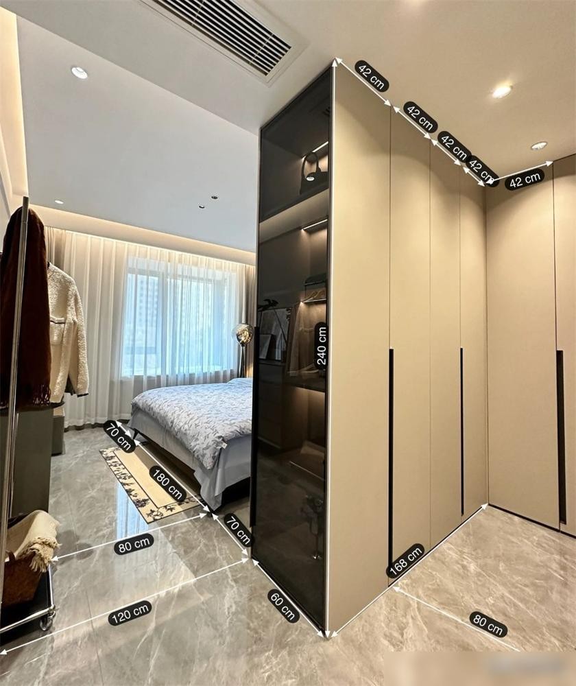 16㎡卧室太大怎么装修?“L形衣柜”一分为二,切出步入式衣帽间