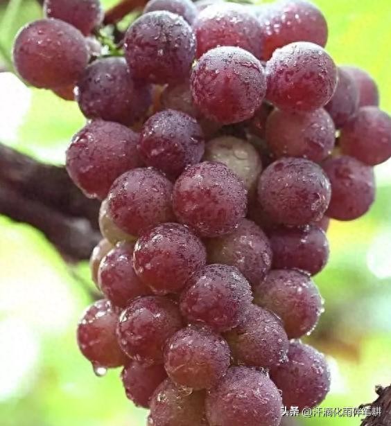 5月(花期和新梢速长期):主要技术措施:1、绑枝梢:当新梢长到40厘米以上时,及时引绑防风折,同时注意掐副穗去卷须,抹去基部萌芽。2、定梢:对生长过密的无花穗的枝疏掉。3、疏穗:疏除过密的穗,一般弱枝不留穗,中庸枝留一穗,壮枝留两穗。掐穗尖:去副枝后掐去穗尖的四分之一到五分之一。4、喷药:开花前后各打一次药。药剂要交替使用,主要防治黑痘病、穗轴病、灰霉病、绿盲蝽象等病虫害。花后:花后防治是病害防治的关键时期。应施用防治效果好,杀菌光谱 的杀菌剂,还要针对性使用内吸性药物。5、摘心:花前2-3天对巨峰葡萄进行硬枝或半木质化摘心,按壮弱穗以上留3-6个叶片。硬枝摘心或半木质的,座果后再留足叶片。对座果率高的进行晚摘心,如红地球葡萄可推迟到14-15个叶时再摘心,以后反复摘心防徒长。对巨峰葡萄摘心后副梢可选上部一好梢留足叶片摘心,其余疏除。6、花期喷肥:开花前推荐施用一次药剂和补硼。7、幼树管理:及时浇水、松土保墒、引绑、新植育苗移栽。