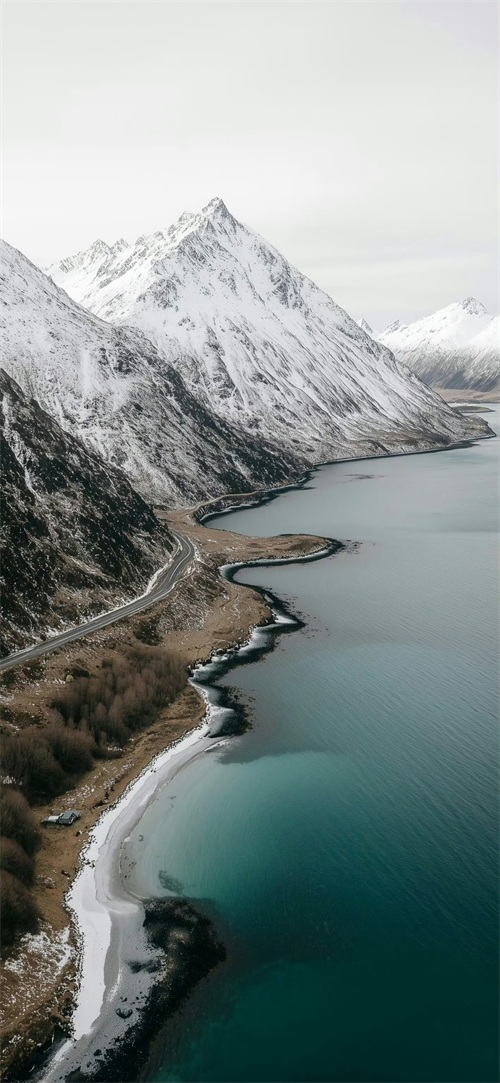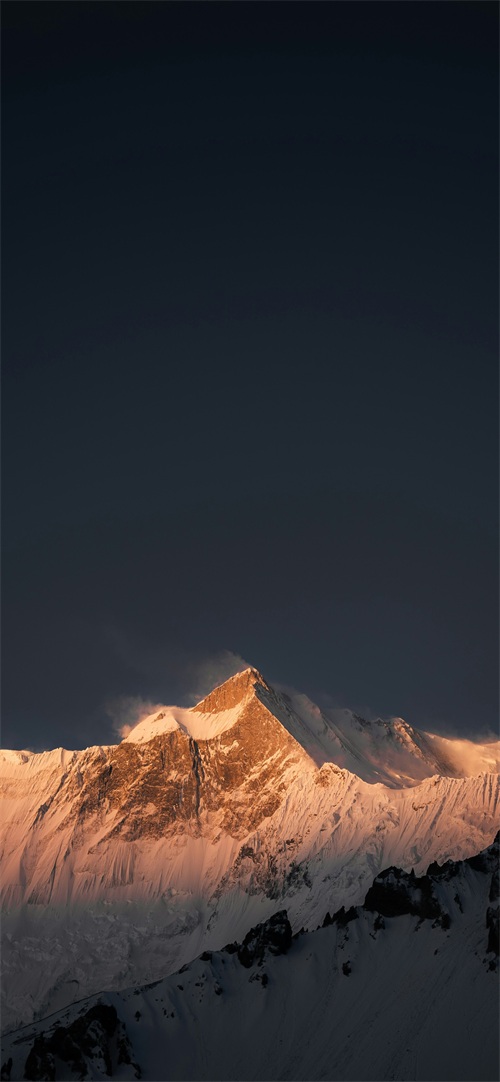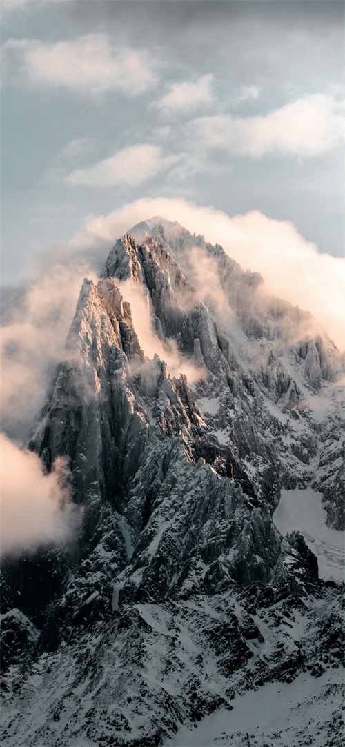 手机壁纸展现了一幅壮丽而孤高的自然景观,仿佛是大自然最引以为傲的杰作。画面中,巍峨的高山直插云霄,山巅之上,皑皑白雪覆盖,闪烁着耀眼而纯净的光芒,宛如仙境中的圣域,既神秘又令人向往。阳光从云层的缝隙中倾泻而下,为这银装素裹的世界镀上了一层淡淡的金辉,光影交错间,每一片雪花都似乎在轻轻诉说着冬日里的寂静与祥和。