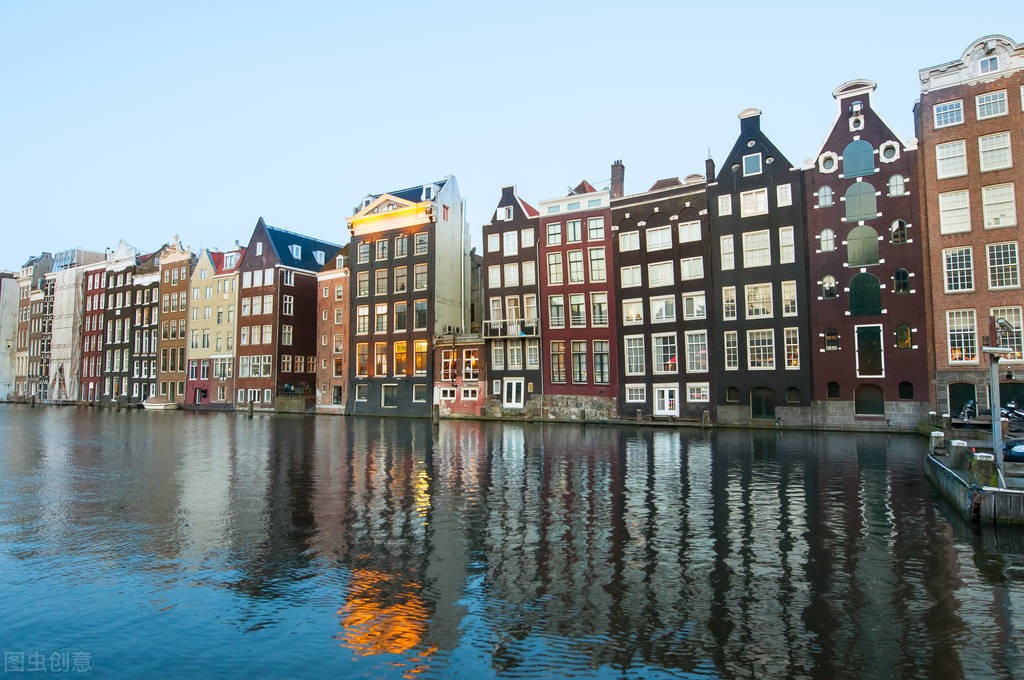 阿姆斯特丹是个水城,四周运河环绕、河道纵横,水位几乎与街面持平,街道古老宁静,运河两岸的房子都是三层、四层小楼,被蓝、绿、红等各种颜色精心装饰,门小窗户大,我国贵州镇远古城舞阳河两边的房子,和这里的房子就有很多相似之处,显得古老而极有味道。