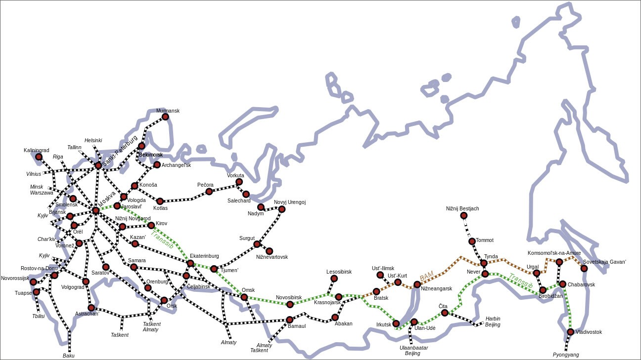 从网络和地图上寻找俄罗斯滨海边疆区的小镇丘古耶夫卡在这一篇文章里讲到过,俄罗斯大部分人口比较多的城市、城镇、居民点都是沿着铁路线分布的,哪怕有一条支线也会有人居住不至于被废弃掉。俄罗斯的欧洲部分铁路线非常密集,当然城市也密集,人口众多了。