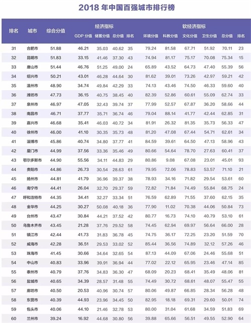 在最新的2018中国百强城市排行榜中