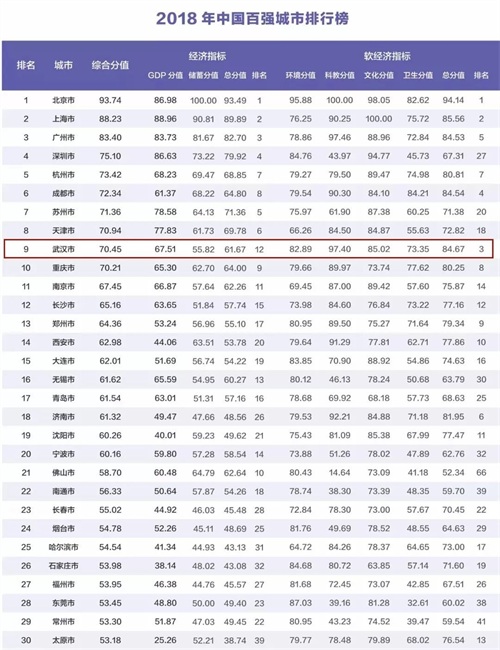 其中武汉位列第9!