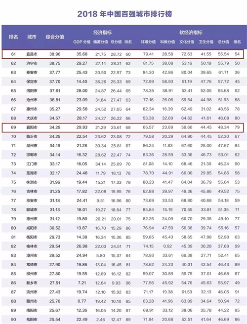 襄阳位列第69位!