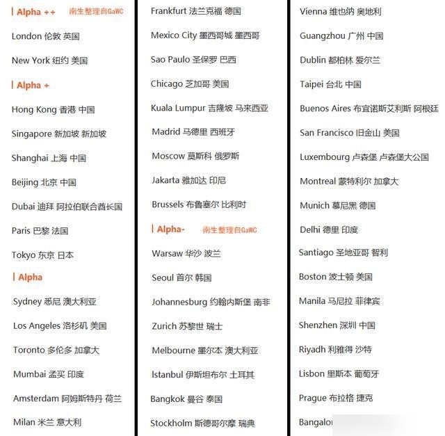 GaWC机构对于世界级别各国城市全球排名是非常权威的数据,受到很多官方作为参考。而今年GaWC机构公布的全球城市排名册,似乎有些意思。让我们拭目以待。