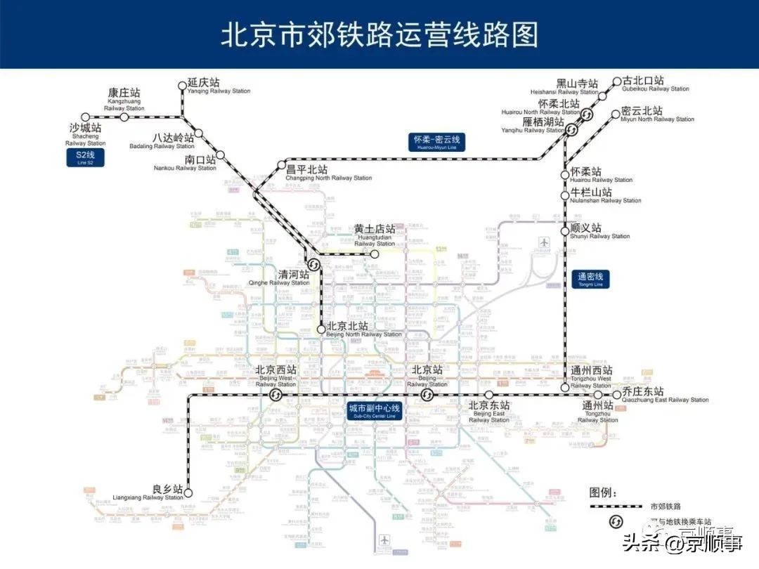 零距离对接市郊铁路对于临河站积极意义也很大,后面两张图就可以看到未来这一站的设置必要性。截至2022年年底,北京已开通运营4条市域(郊)铁路,分别是S2线、城市副中心线、怀柔-密云线和通密线,运营总里程达到400公里,车站24座,处于全国领先水平。