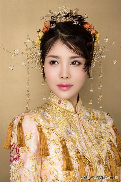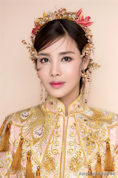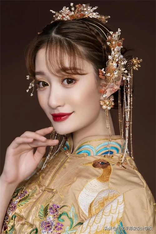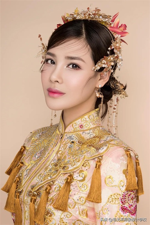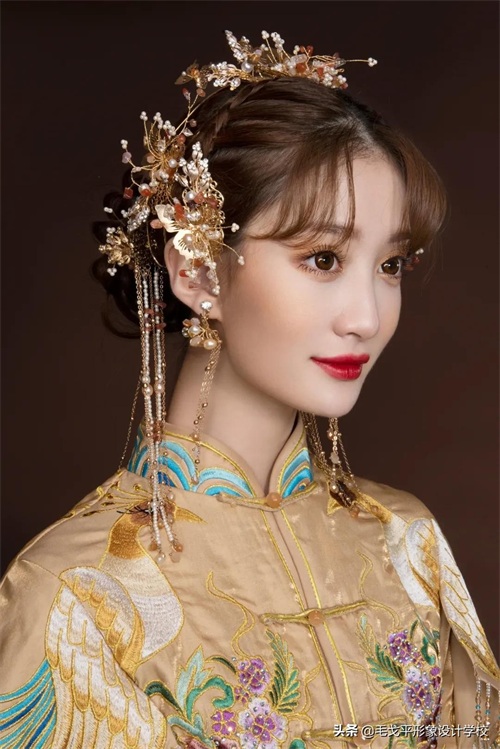 气质新娘适合的精致金色中式造型,既有中式古韵,又不失灵动~▼