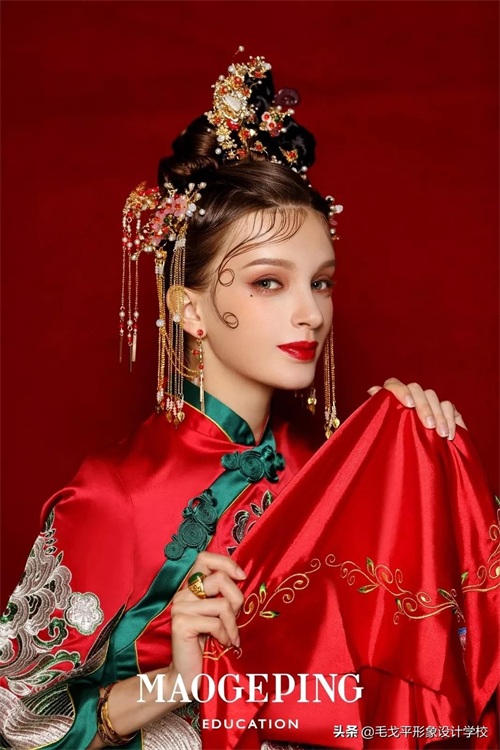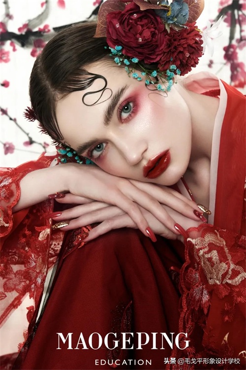 白里透红正红妆色,精致立体的五官刻画,宛如画中美人~▼