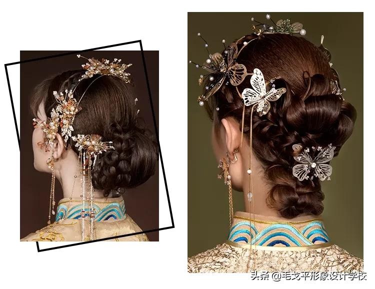 中式新娘发型也不再千篇一律,运用编发手法代替传统盘、包手法,打造多样化的中式新娘造型!▼