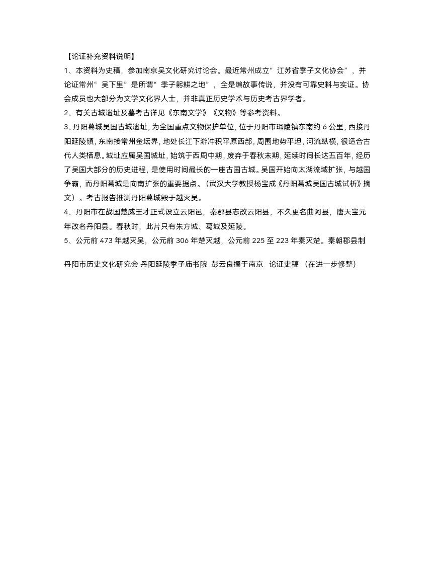 点击图文可放大阅读论证,共13页。关键点:吴国起源发展方向与时间、季子封于延陵经过与时间、史料考证、延陵历史地理、延陵季子实物考证