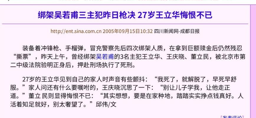 只不过,王立华抢劫国库的计划还没来得及实施,就因为绑架演员吴若甫一案被捕,2004年,王立华被判死刑,于2005年被执行死刑。如此悍匪,说他排名第一似乎也不过。