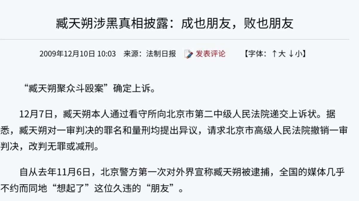 2008年,臧天朔因为涉及一起聚众斗殴引发的命案而被逮捕,消息一出立刻引起了轩然大波。很多人都没有想到,这么一个红遍全国的大明星居然会涉及黑恶势力,更令人没想到的是,其实臧天朔还能在“北京黑帮”排上号。