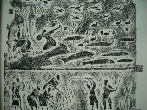 收获与弋射砖画