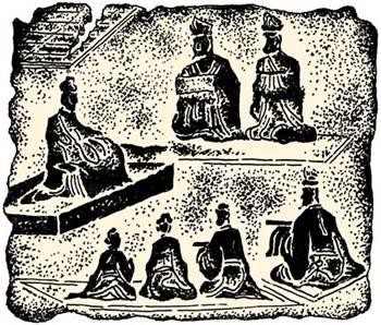 汉代还有一种讲学授经题材的画像砖,以正视或者侧视的角度为主,一人端坐于杏坛之上,其余弟子围坐于两侧,仔细聆听老师讲学。汉代儒学兴盛,中央专门设置有儒学博士翻译经书,各个官员考核时需要以经义论对,还专门设置太学以学习儒学,到了东汉时期还专门刻写儒学经书于碑石之上,立于长安城外的太学内。