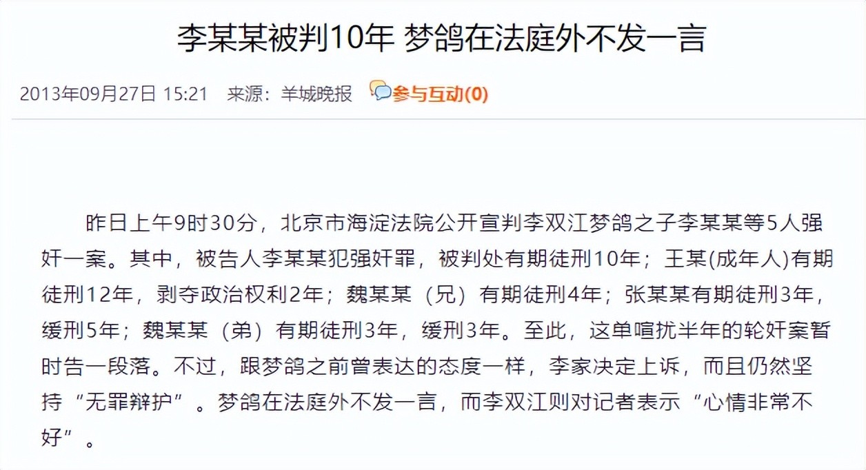 随着女孩的报警,该事件被曝光,震惊全国,梦鸽和李双江被推上了舆论的风口浪尖。