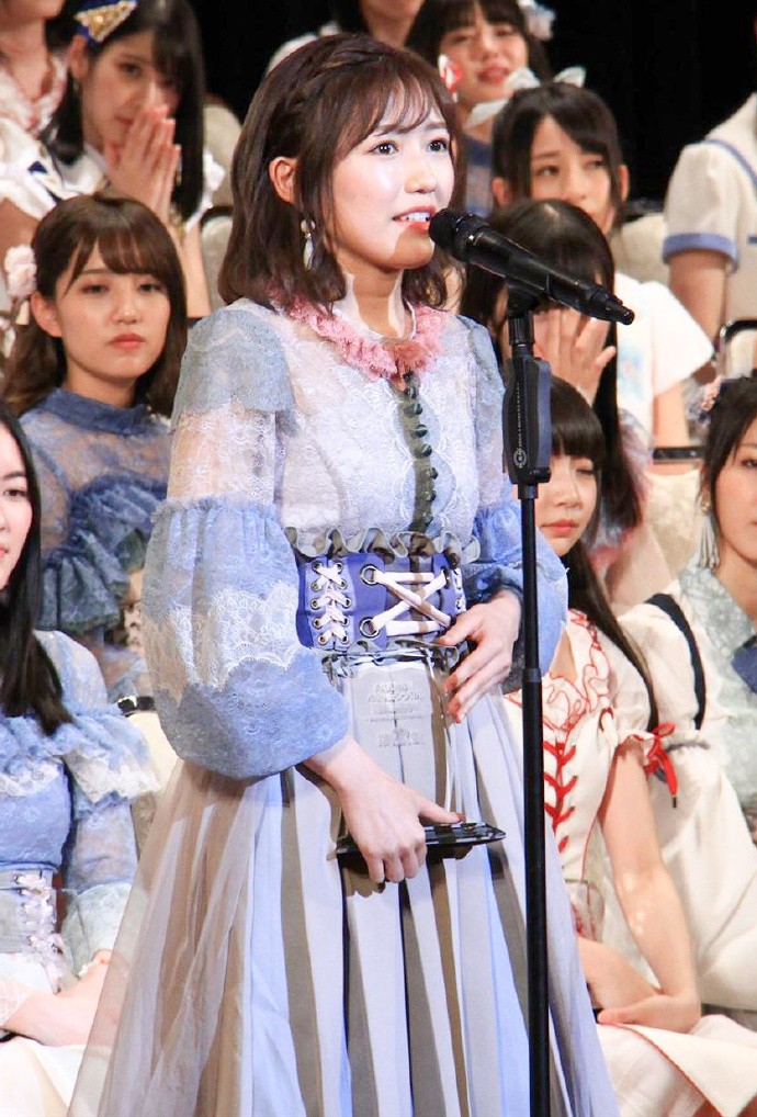 “已经到了年轻的一辈不得不开辟新道路的时候了。明年我想拿到第一位。虽然可能我还不够成熟,但会以每天都能有所成长为目标而努力的。”——渡边麻友