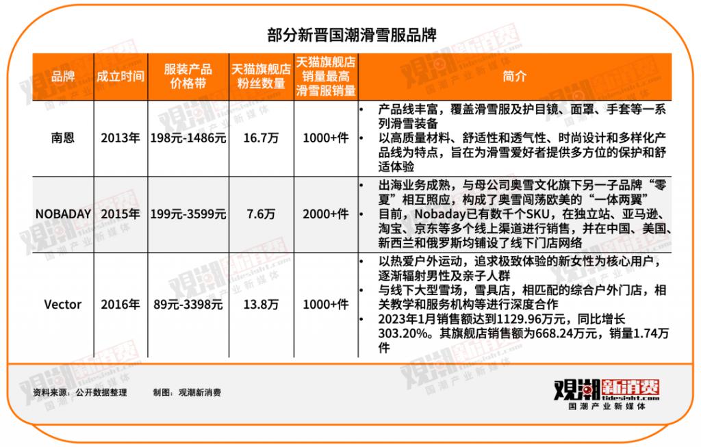 除了消费者熟知的传统羽绒服品牌波司登、运动品牌李宁等将滑雪服作为今年主推品类,新成立的国潮滑雪装备品牌也在慢慢崭露头角。