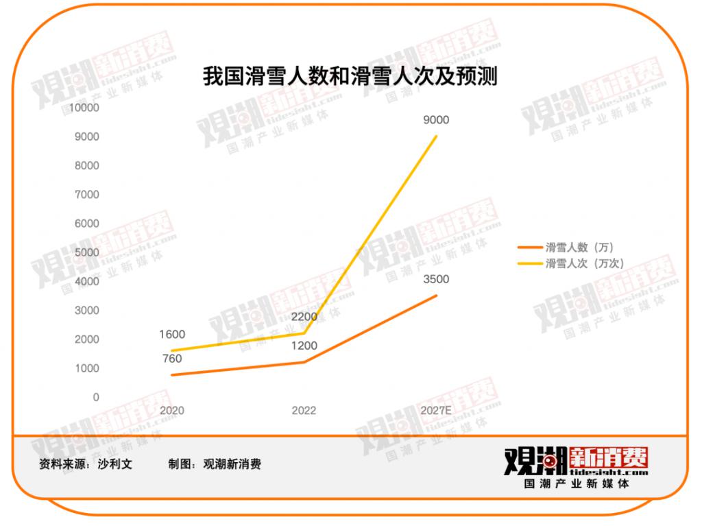 近几年我国冰雪行业飞速发展。沙利文相关数据显示,我国滑雪人数到 2027 年预计将达到近 3500 万人,滑雪人次将达到近 9000 万人次。