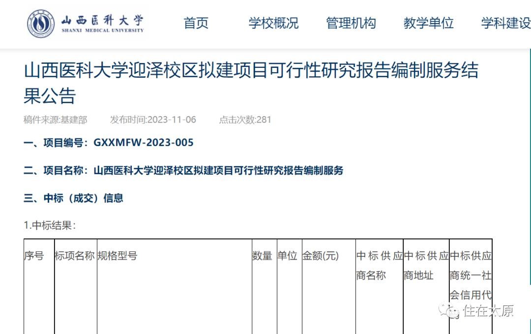近日,官方相继发布了两则公告,即《山西医科大学迎泽校区拟建项目可行性研究报告编制服务的采购公告》和《山西医科大学迎泽校区拟建项目可行性研究报告编制服务的采购公告》。