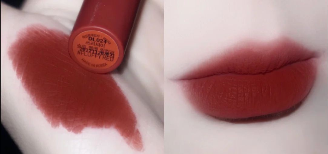 红调中一点点橘调,亚光丝绒质感的口红,黄皮小姐姐去约会看看这支,少女感爆棚,白皮春天真的很适合,给人一种元气满满的感觉。