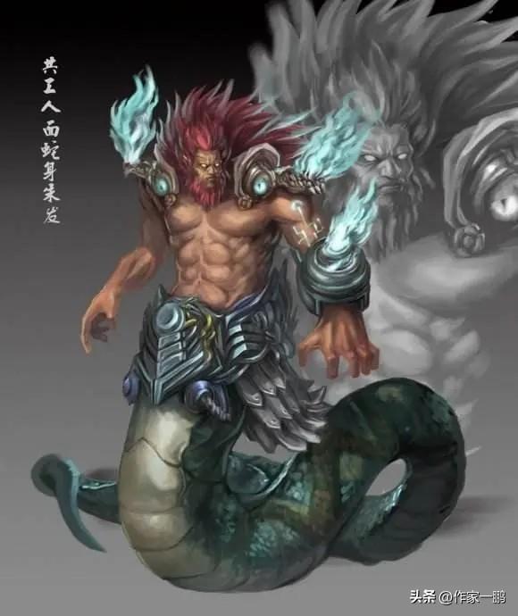 共工,传说是神农氏的后代,属于炎帝一族,是一个人面手足蛇身的形象,是中国古代神话中的水神,掌控洪水。传说共工与颛顼不合,在一次战斗中怒撞不周山,造成了世界的倾斜。