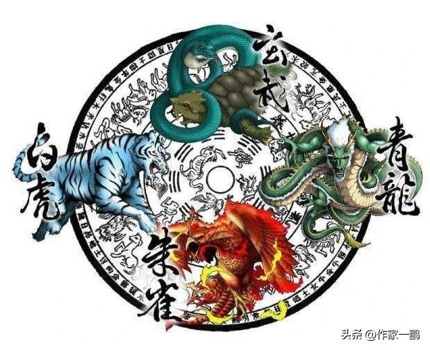 即指玄武、白虎、朱雀、青龙四位神明,由太阴、少阴、太阳、少阳四种阴阳变化而成。四象中青龙最早的创世记载见于汉代《淮南子》,《淮南子·天文训》记载:“天神之贵者,莫贵于青龙,或曰天一,或曰太阴,青龙所居,不可背之……天地以设……四维乃通,或死或生,万物乃成”,认为青龙创造天地、四维、生死、万物。 在正统道藏收录的《混元八景真经》中,有着这样四象合力创生五亿天地的记载:“北方壬癸水,卦主坎,其象玄武,水神也。南方丙丁火,卦主离,其象朱雀,火神也。东方甲乙木,卦主震,其象青龙,木神也。西方庚辛金,卦主兑,其象白虎,金神也。 此四象者,生成世界,长立乾坤,为天地之主,谓之四象。”