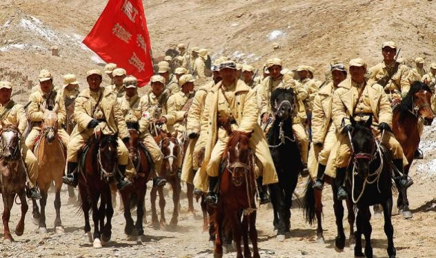 先遣连的战士们各个热血沸腾,他们高喊着口号,握紧手中的钢枪,在连长李狄三的率领下,昂首阔步踏上了南下西藏的征途!