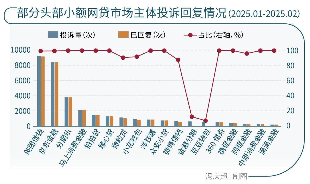 南方周末新金融研究中心研究员在黑猫投诉平台实测发现,近1个月内投诉量最多的10家机构,投诉回复率均超过90%,美团借钱、京东金融、马上消费金融公司等头部机构对新增投诉的响应时间均在1天以内。如消费者提交的证据充分,商家对相关投诉提出解决方案的速度较以往显著提高。