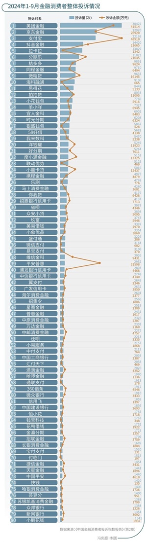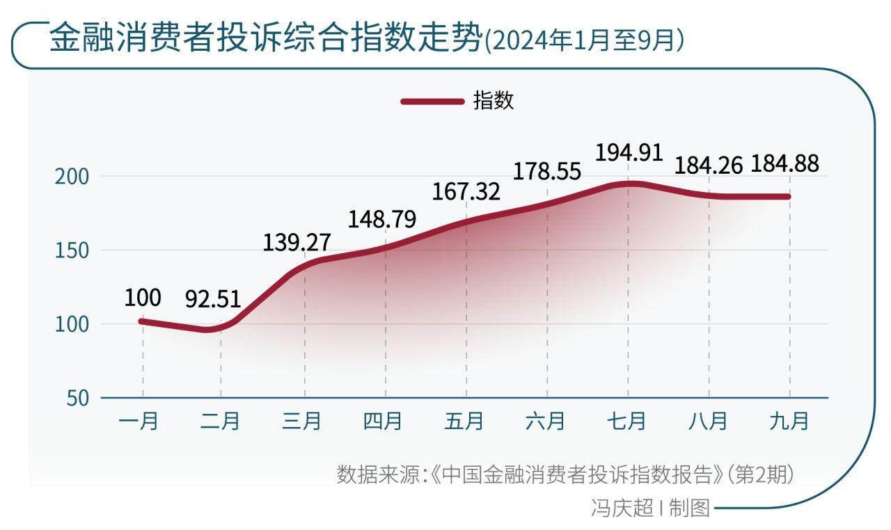 2025年2月28日,北京市互联网金融行业协会发布了《中国金融消费者投诉指数报告》(第3期)(下称《报告》)。《报告》基于北京市互联网金融行业协会投诉平台、黑猫投诉平台和中国电子商会旗下消费服务保障平台“消费保”,收集并筛选出2024年全年涉诉金额小于50万元的超50万条金融消费者投诉有效数据。