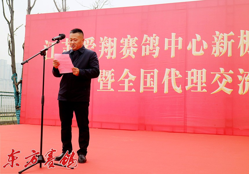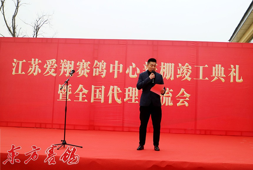 爱翔赛鸽中心董事长李伦致辞表示:今天我们在这里隆重的举行典礼,庆祝江苏爱翔赛鸽中心最新投建的现代化赛鸽公棚和办公楼,完美竣工,投入使用,这是爱翔公棚的一件喜事,标志着爱翔公棚的服务设施,提升到了一个新的高度。