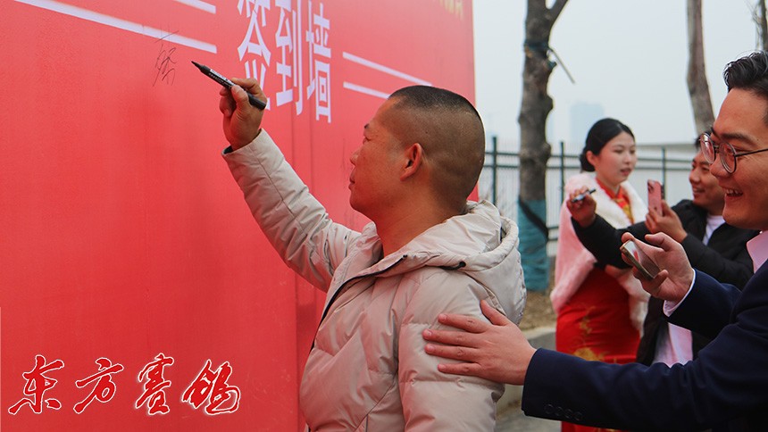 南京市鸽会会长南来京(左一)、鸽友陈玉军(左二)等嘉宾签名合影。