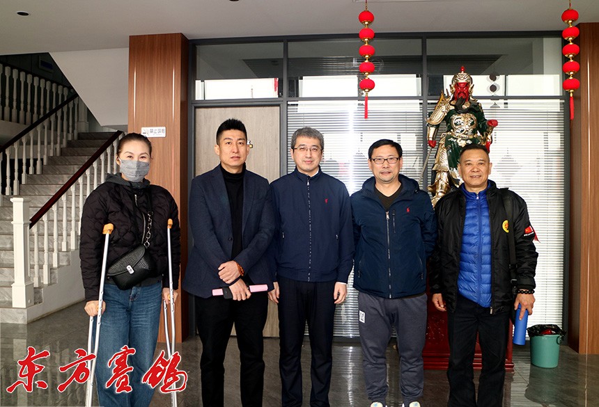 中鸽协竞赛部主任李铮(中)、中鸽协事业发展部主任宋广(左二)、咕咕信鸽董事长孙新苗(右二)、福建三明市朱天明(右),鸽友代理孙影(左)。